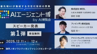 2025年12月に開催される「AIエージェント博」の第1弾スピーカー3名が発表されました。AIエージェントの活用方法や最新トレンドを、業界の第一人者たちが分かりやすく解説します。AI初心者の方も、この機会に最先端のAI技術に触れてみませんか?