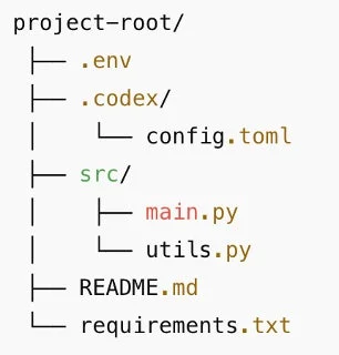 プロジェクト内に、CODEX_HOME=./.codexという設定が書かれた.envファイルを追加します。これにより、Codex CLIはプロジェクト内の特定のフォルダ(./.codex)にある設定ファイルを読み込むよう誘導されます。