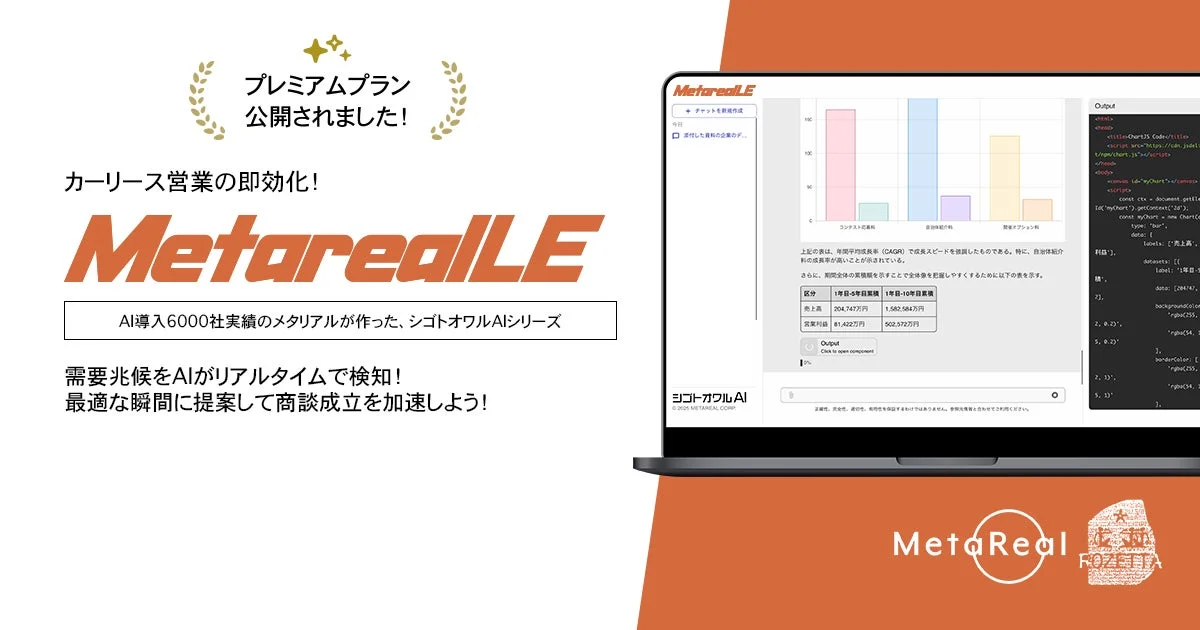 AIがカーリース営業を革新!「Metareal LE」プレミアムプラン登場