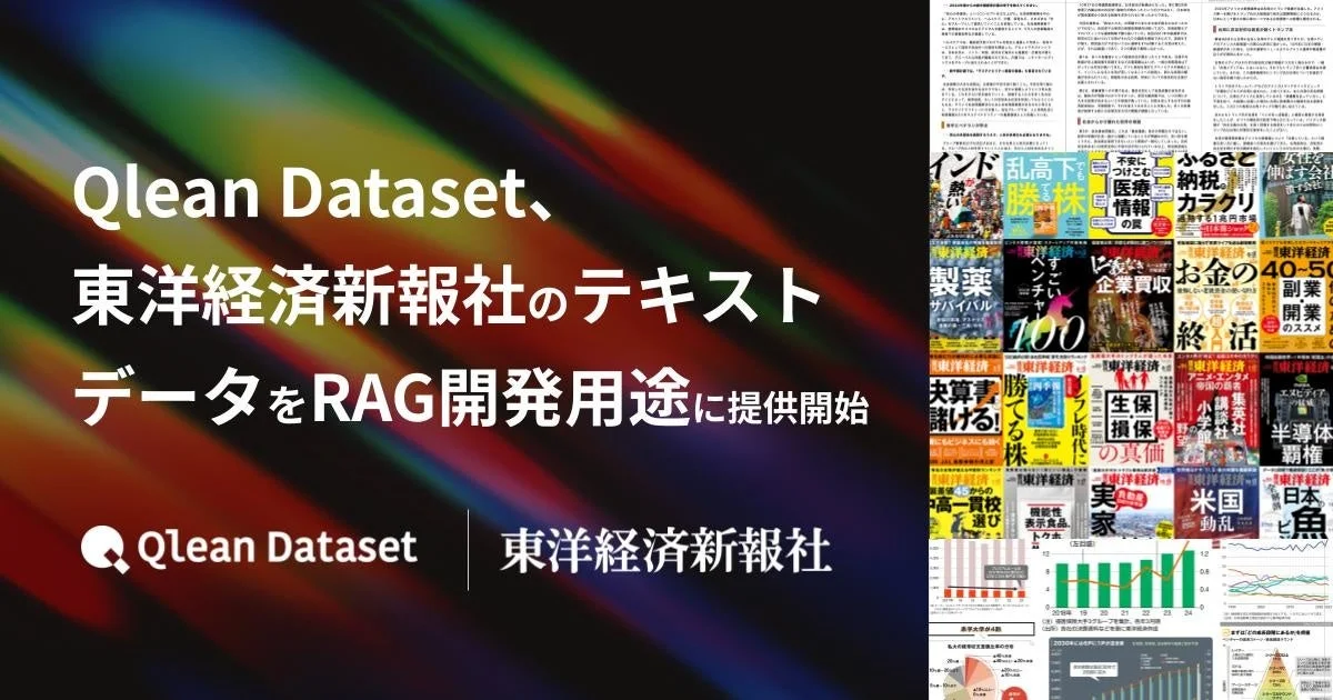 Qlean Dataset、東洋経済新報社のテキストデータをRAG開発用途に提供開始