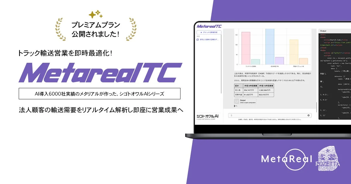 株式会社ロゼッタは、法人向けの貨物輸送需要をAI(人工知能)が予測するレポートAIエージェント「Metareal トラックロジスティクス」(以下、Metareal TC)のプレミアムプランを2026年1月7日より提供開始しました。この新しいプランは、月額5万円(税込)で、1日20回・月200回まで利用できます。