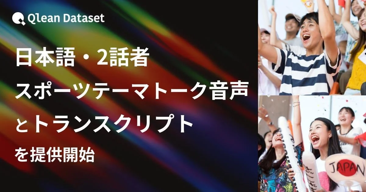 Visual Bank株式会社のAI学習用データソリューション「Qlean Dataset(キュリンデータセット)」が、ASR(自動音声認識)やNLP(自然言語処理)、LLM(大規模言語モデル)といった音声・言語系のAI開発を支援するため、「日本語・2話者・スポーツテーマトーク音声コーパスとトランスクリプト」の提供を開始しました。