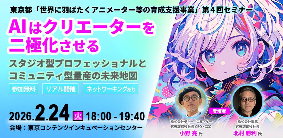イベント名: 東京都「世界に羽ばたくアニメーター等の育成支援事業」第4回セミナー「生成AIは才能か、仕組みか?――少数精鋭スタジオと8,000人コミュニティが描く次世代クリエーター革命」