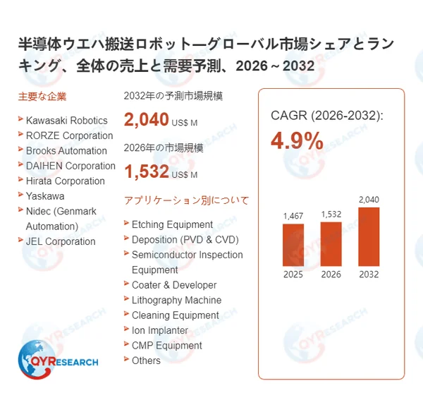 市場調査会社QYResearchが発表した最新のレポートによると、世界の半導体ウエハ搬送ロボット市場は、これから大きく成長すると予測されています。