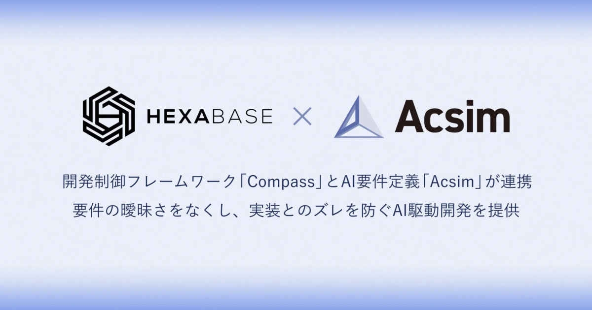株式会社Hexabaseの代表取締役CEOである岩崎英俊氏は、AIコード生成の普及で顕在化した「バイブコーディング」の問題を解決し、誰もが安全で高品質なシステムを構築できる「AI開発の民主化」を目指していると語っています。「Compass」と「Acsim」の連携により、要件定義から実装まで一貫性が整い、価値あるプロダクトを最速で生み出す未来を切り拓いていくことに期待を寄せています。