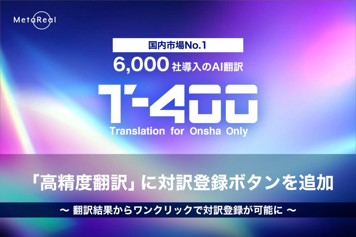 株式会社ロゼッタは、高精度産業翻訳AI「T-4OO(ティーフォーオーオー)」に、翻訳結果の画面から直接「対訳登録」ができる新しいボタンを追加しました。