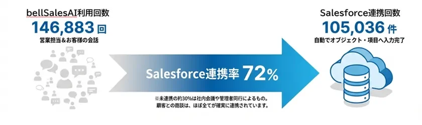 そんな中、ベルフェイス株式会社が開発・販売するSalesforce入力エージェント「bellSalesAI(ベルセールスエーアイ)」が、ユーザーのSalesforce自動入力率で月間72%という高い水準を達成したと発表しました。これは、顧客との商談データがほぼ確実にSalesforceに記録されていることを意味します。