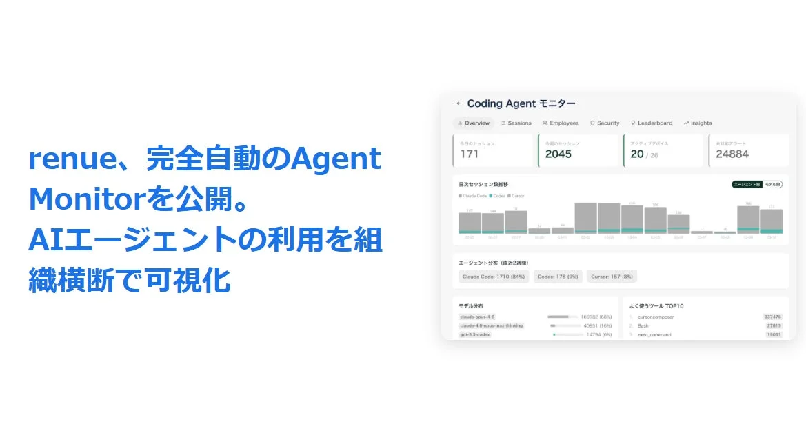 renue株式会社は、このAIエージェントの利用状況を組織全体で「見える化」し、その活用をサポートする新しいツール「Agent Monitor」を公開しました。特に、Claude Code、Codex、Cursorという、主に開発の現場で使われる3つのAIエージェントツールの利用履歴を、初回起動するだけで、その後の操作は一切なしで自動的に追跡できる仕組みです。