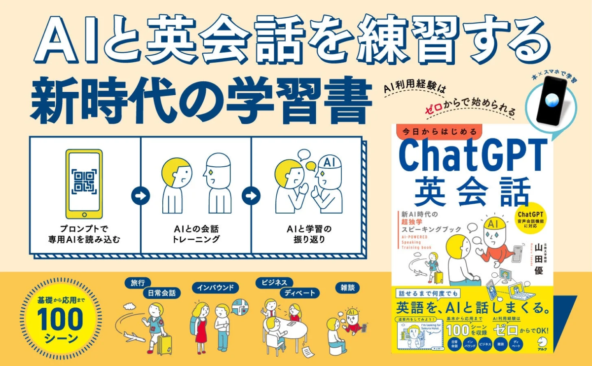 AI(人工知能)の進化は、私たちの学習方法にも大きな変化をもたらしています。特に英会話学習において、AIはこれまでにない可能性を広げています。2026年3月23日、株式会社アルクから、AIとの会話練習に特化した新しい英会話教材『今日からはじめる ChatGPT英会話 新AI時代の超独学スピーキングブック』が発売されました。