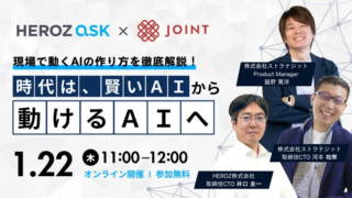 HEROZとストラテジットは、生成AIを実際の業務で「実行」までつなげるためのウェビナーを共催します。チャットに留まらないAIエージェントの活用方法や、HEROZ ASKとJOINTを組み合わせた実践的なアプローチを、AI初心者にも分かりやすく解説。現場で役立つAIの導入を検討している方に最適な内容です。